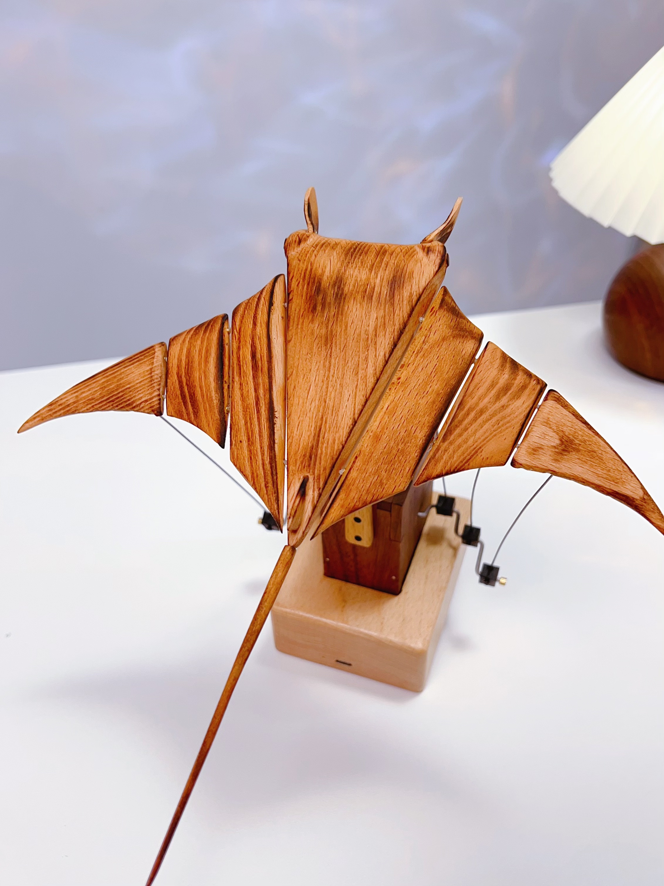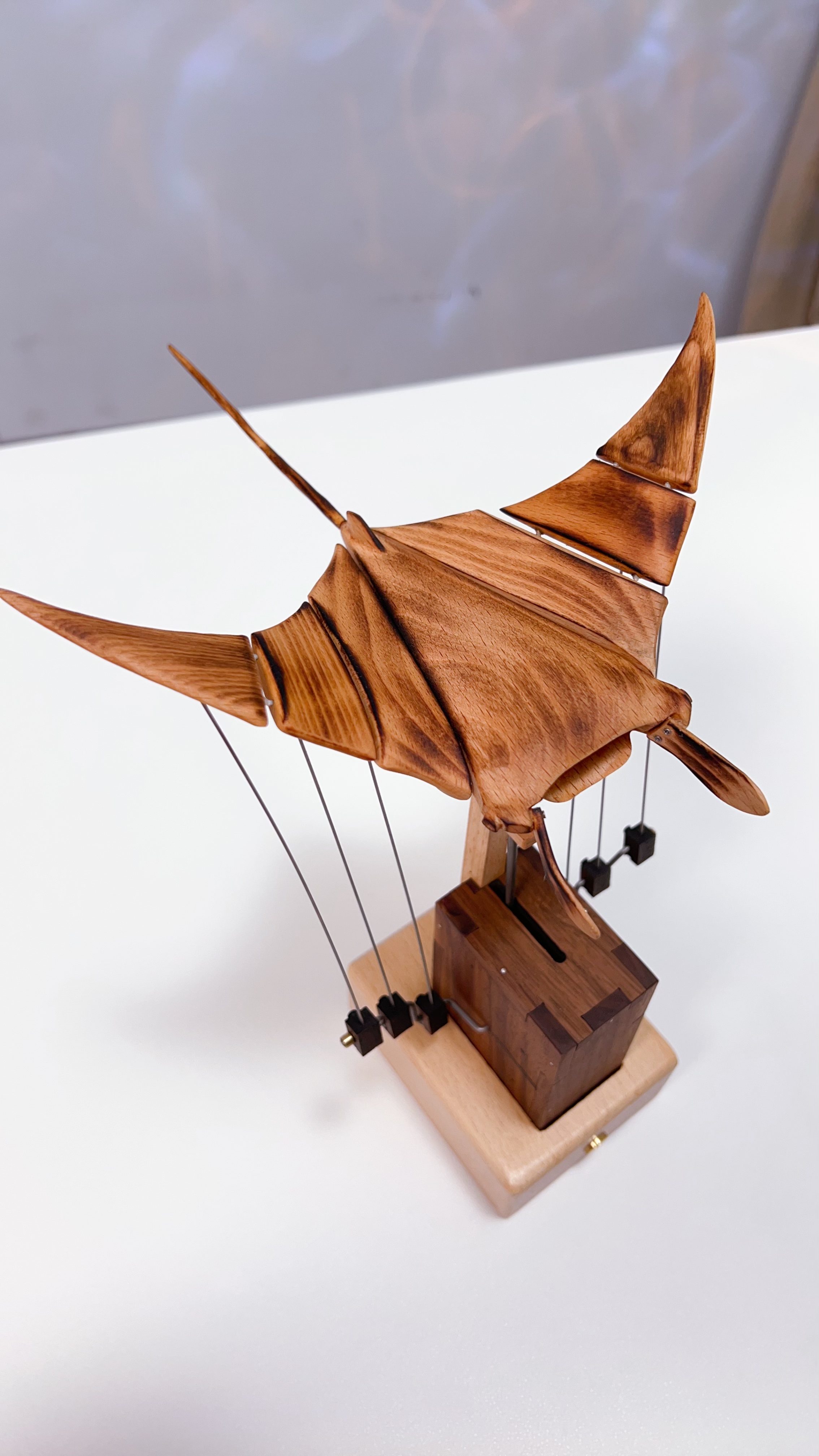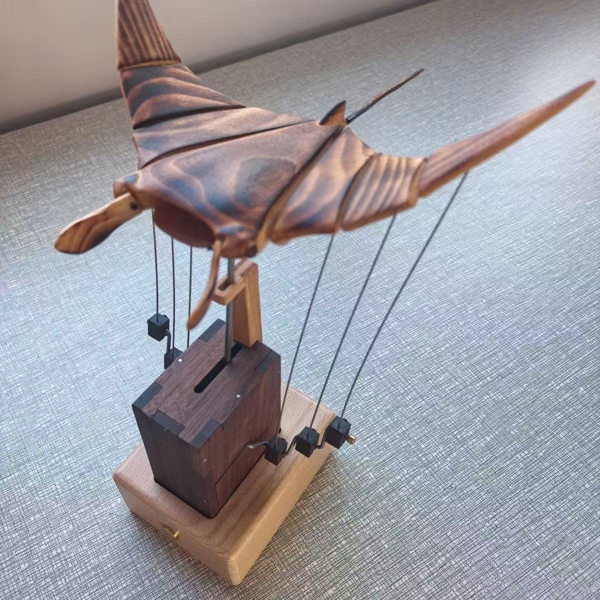 Handcrafted Wooden Manta Ray Automaton