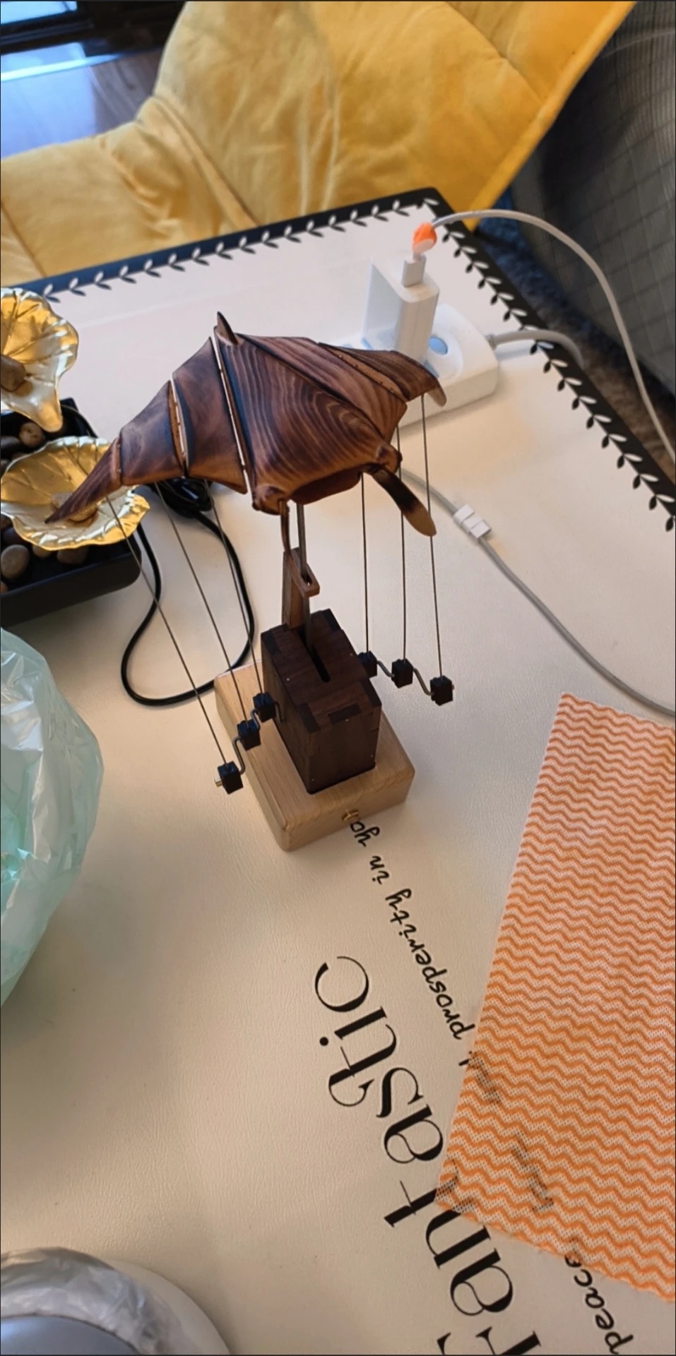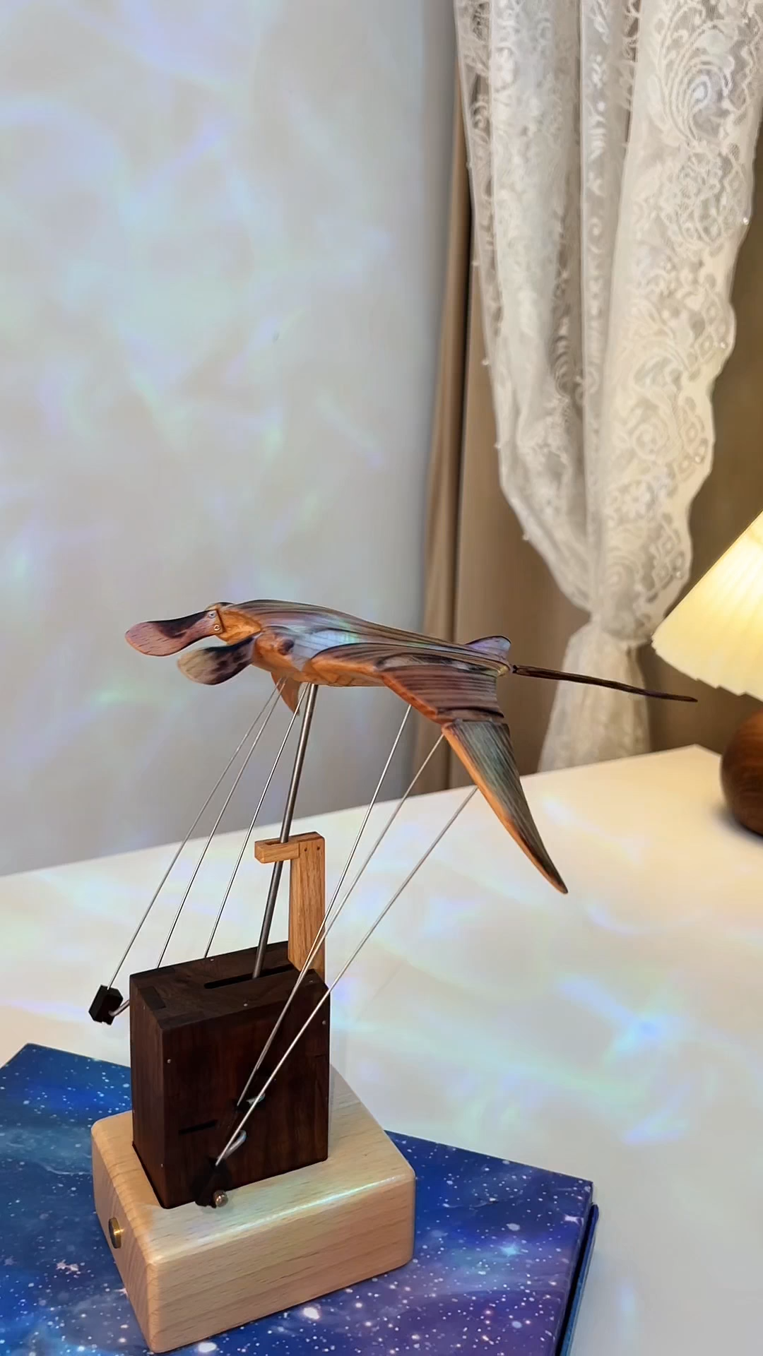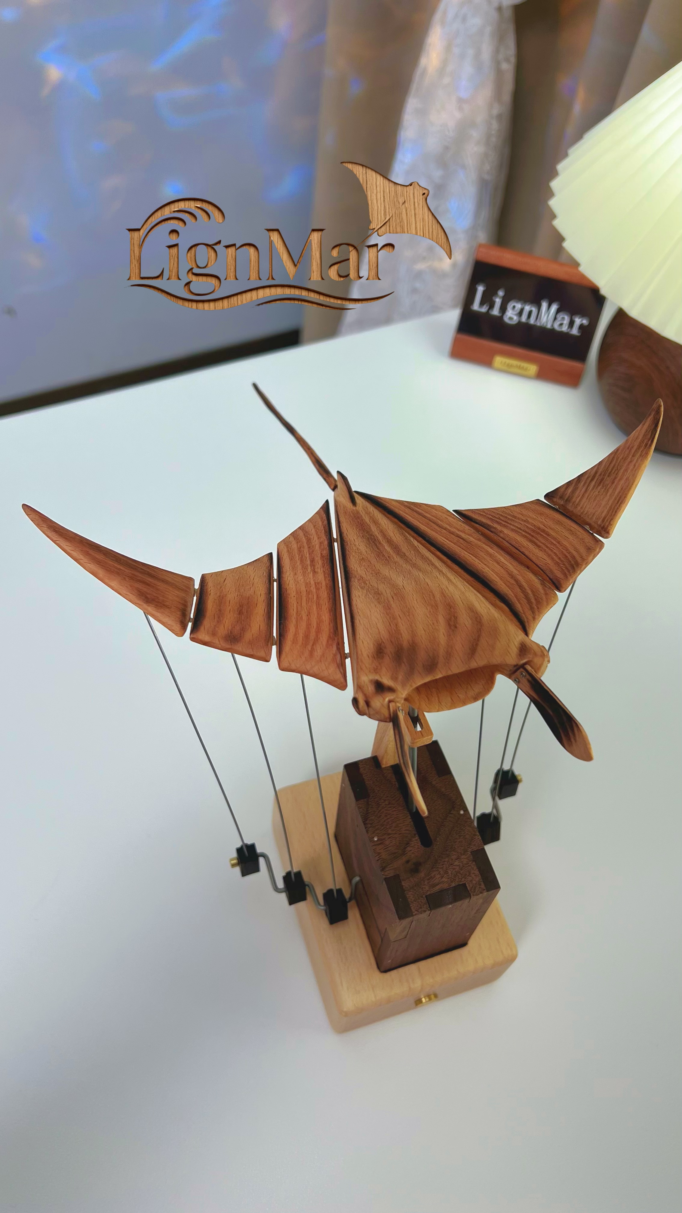 Handcrafted Wooden Manta Ray Automaton