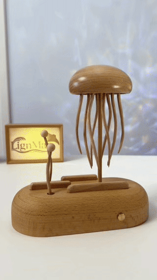 Our beechwood jellyfish—handcrafted with layered motion and a quiet motor—recreates the gentle pulse of ocean life.